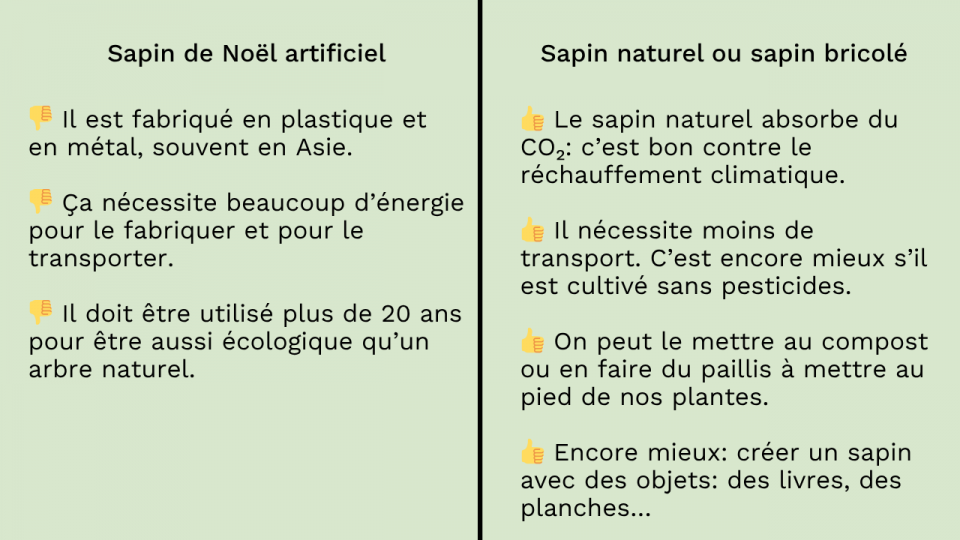La tradition de décorer un sapin pour célébrer Noël est apparue il y a environ 500 ans, en Alsace, en France. Ensuite, elle s’est répandue en Allemagne, puis dans toute l’Europe et, enfin, en Amérique du Nord. À l’époque, on coupait des arbres dans la forêt. Mais maintenant on achète des arbres cultivés ou encore des arbres artificiels. Est-ce que ce sont de bons choix?
